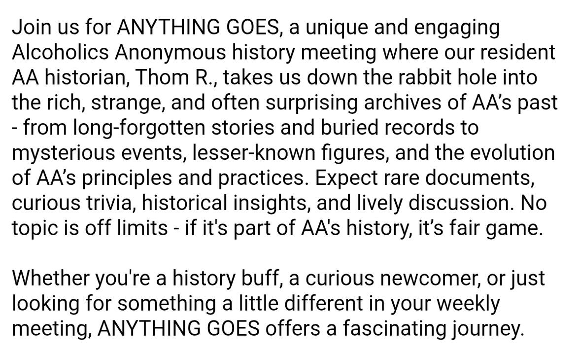The Largest Weekly A.A. Meeting in the World. Wednesday @ 10:15 pm Eastern